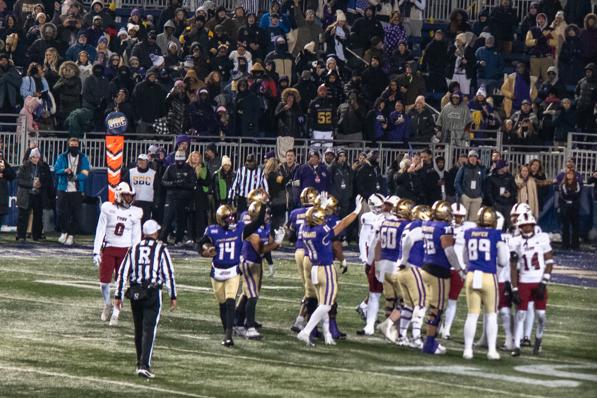 Troy QB Chirping the Fans.